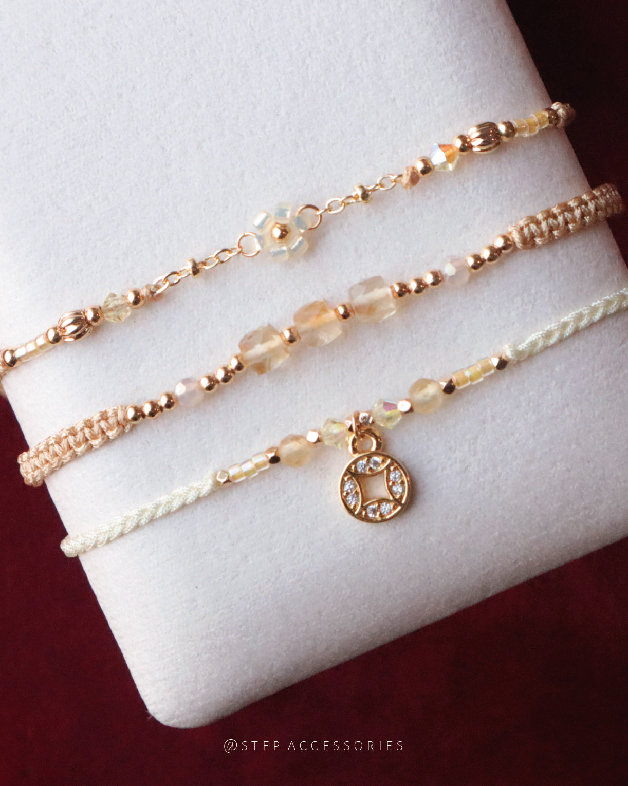 ✥ **黃水晶**New Year Handstrap with copper coins - 銅鍍18k金 , 天然石, Swarovski, 日本古董珠