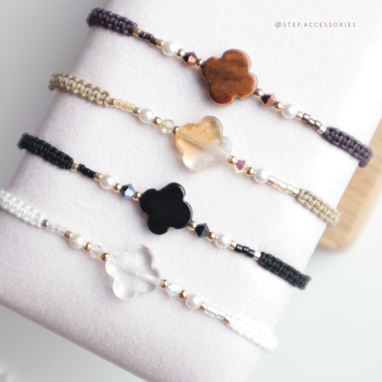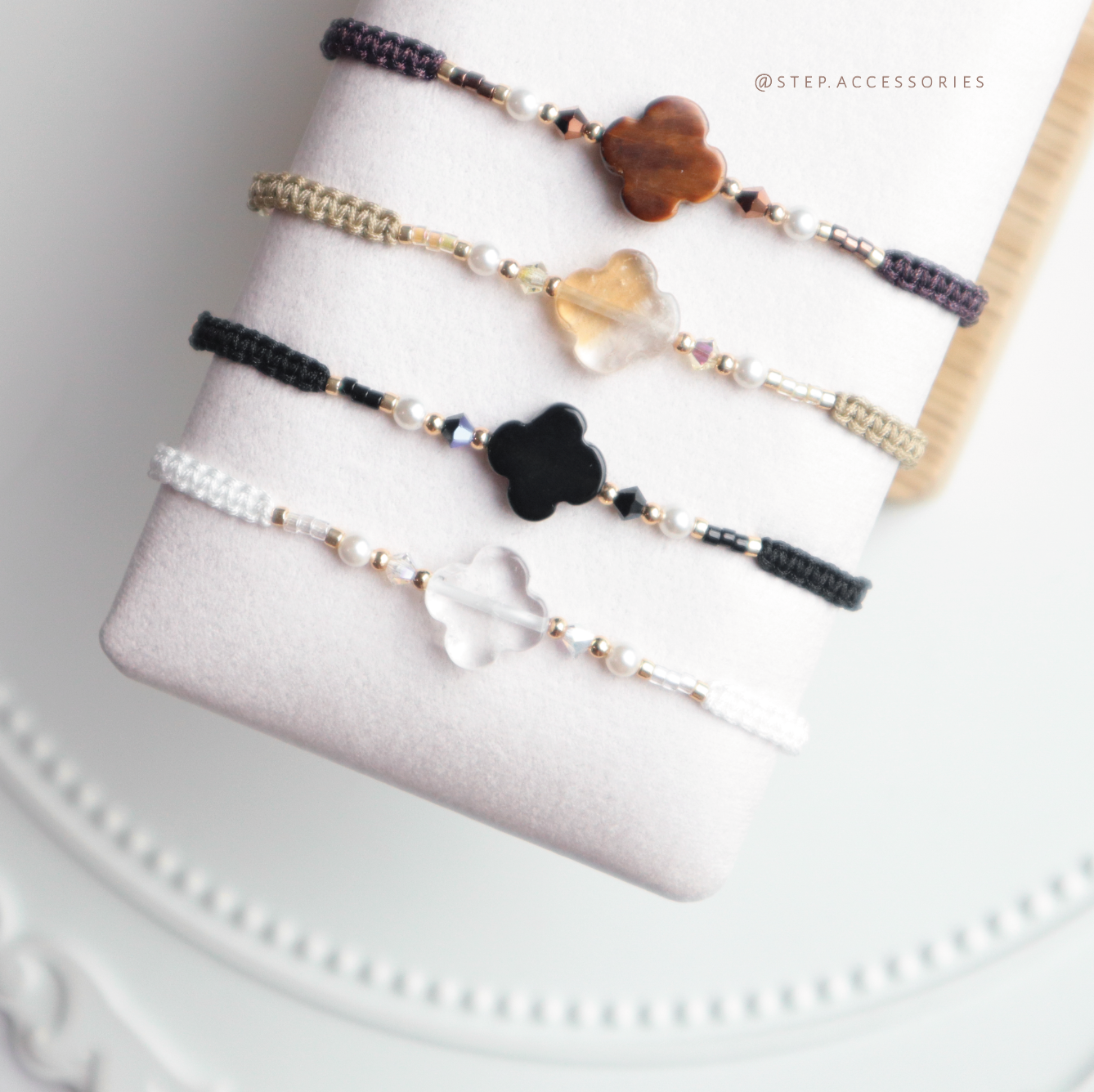 Flower Natural stone Hand strap with glass pearls and Swarovski <brown,yellow,black.white>